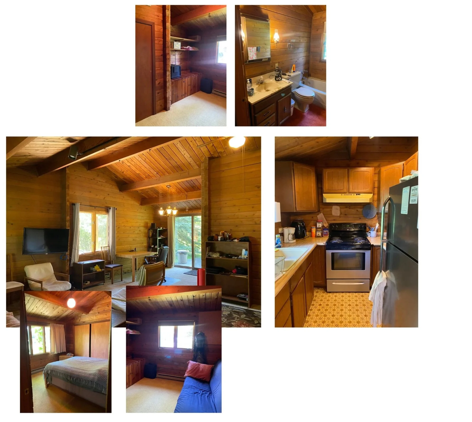 Before and after moments highlight the transformation, revealing how thoughtful updates have enhanced both function and flow. A new south-facing deck extends the living space outdoors, creating an inviting setting for gathering and hosting. Looking ahead, the owners plan to build their main home farther back on the property, allowing the cabin to preserve the quiet charm of its original setting.
